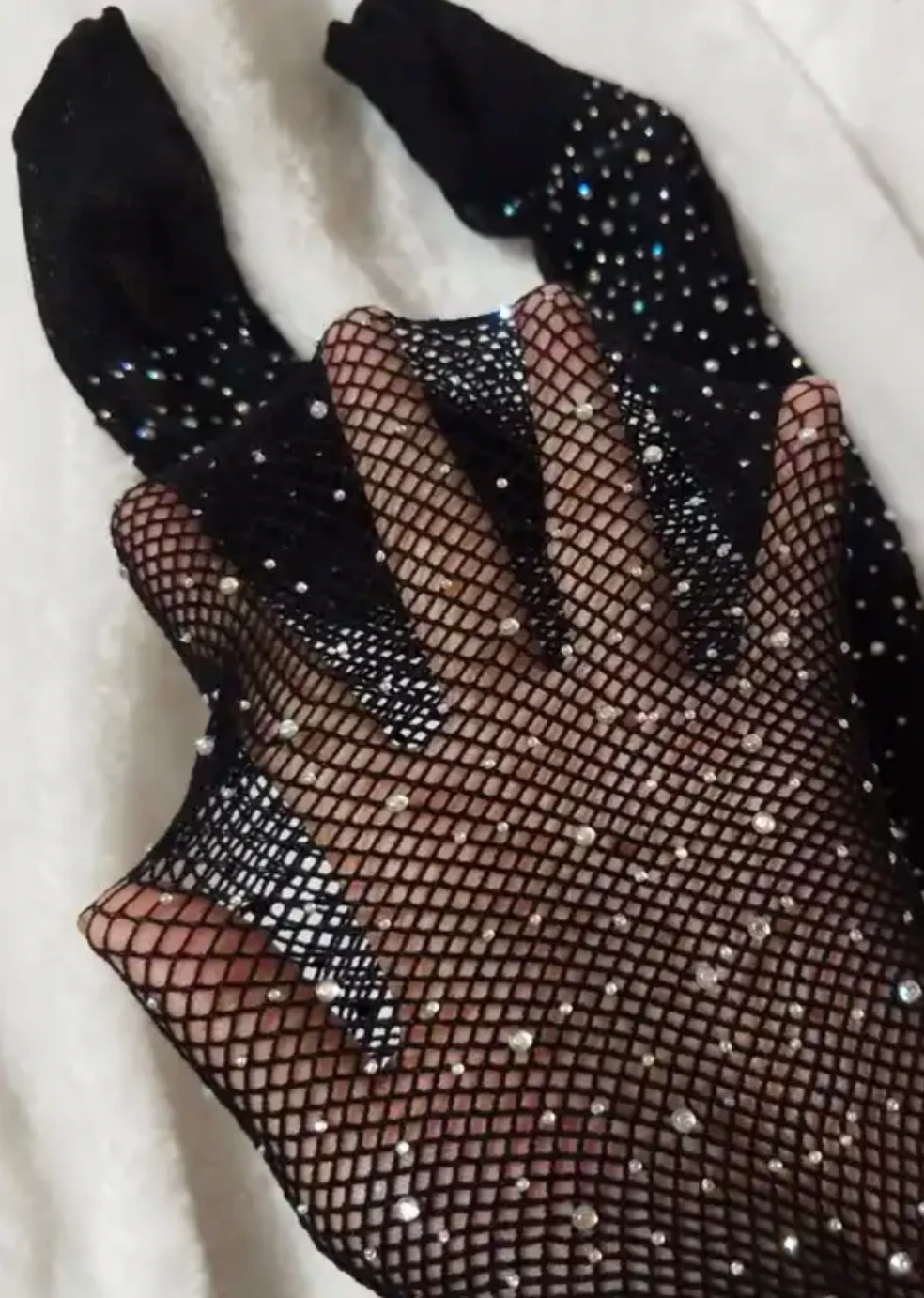 DISCLAIMER: DUE TO THE DELICATE RHINESTONES, SOME MAY FALL WHEN STRETCHING THE FABRIC