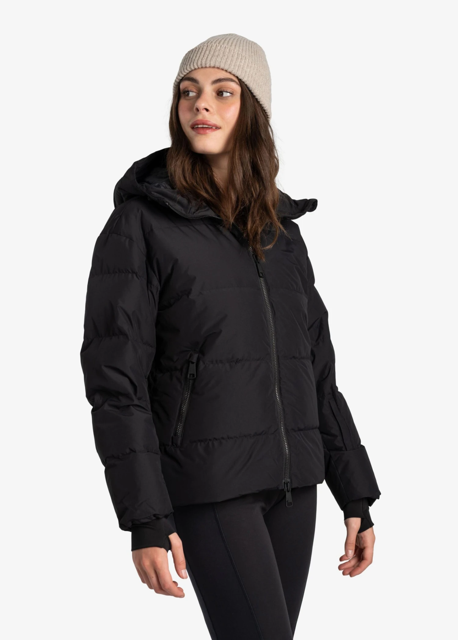 Seamlessly transition from city to slopes in this versatile ultra-puff jacket. Designed with a helmet compatible hood, ski pass arm pocket, and water-repellent matte finish.
