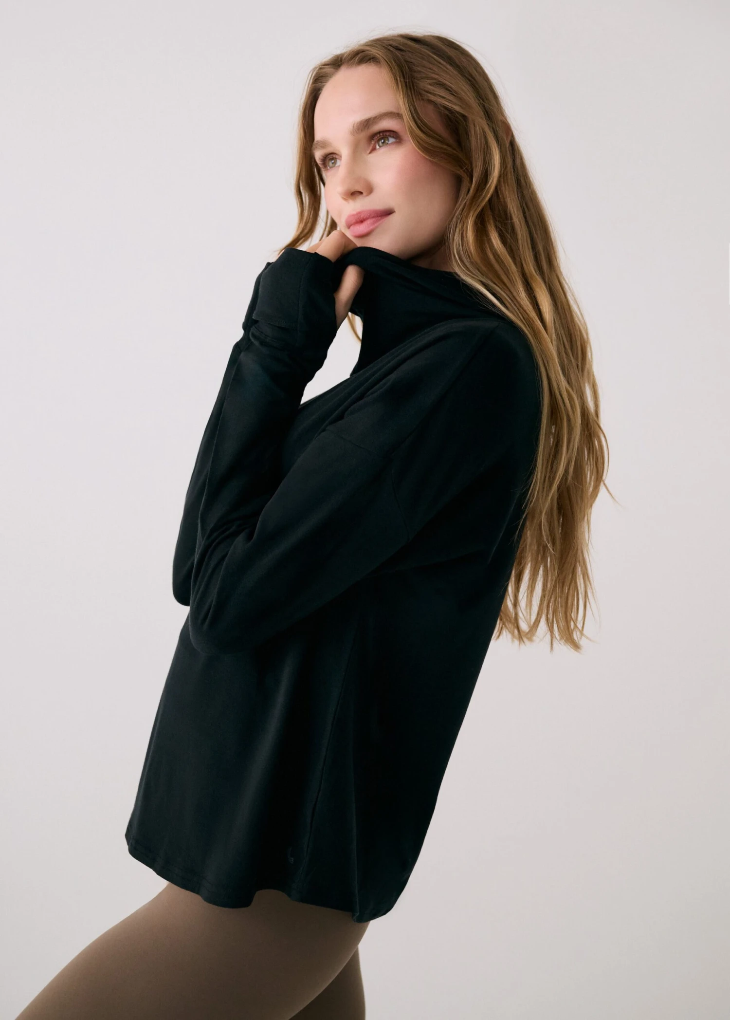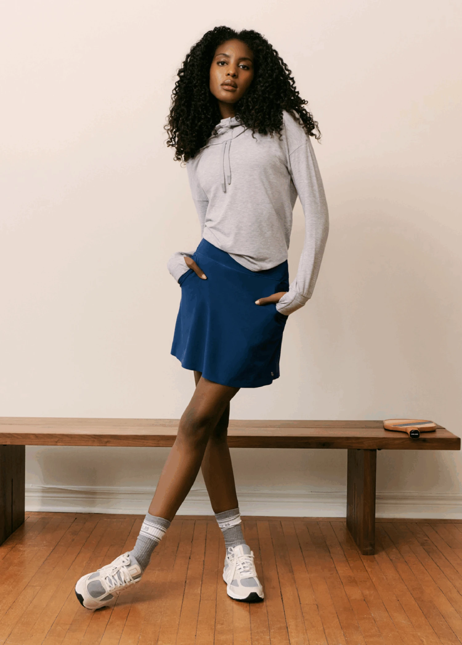 With relaxed drop shoulders and an adjustable hood, this flare-fit, lightweight hoodie is officially your new favourite. Thoughtfully made with a merino wool blend to give you natural breathability and all-day freshness.
