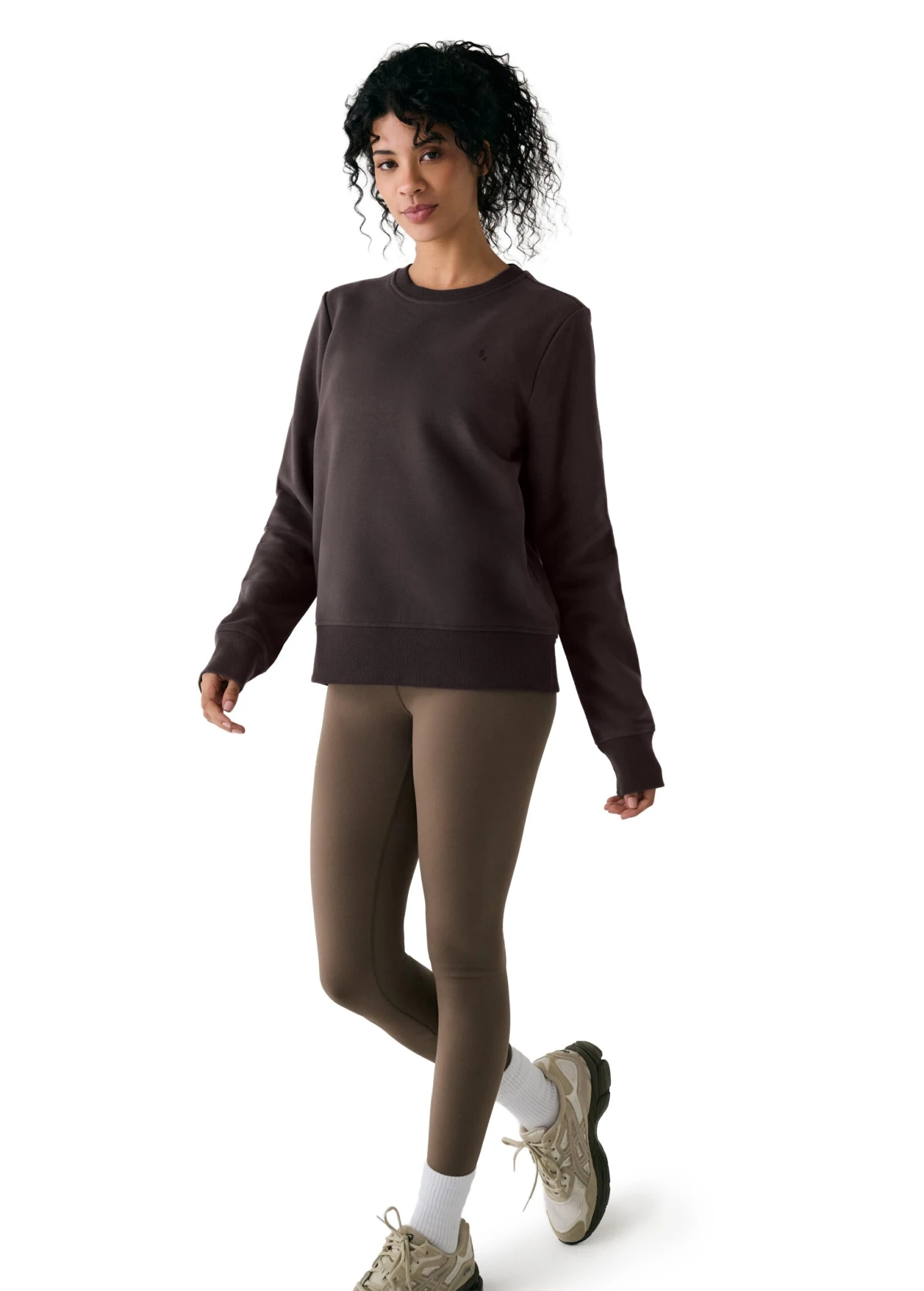 Icons, only. The cozy classic crewneck pullover features wrist cuffs and a banded waist finished with the Lolë logo at the front of the chest. Hitting just above the hips, the fit is perfect for running errands or layering over top on chillier days.