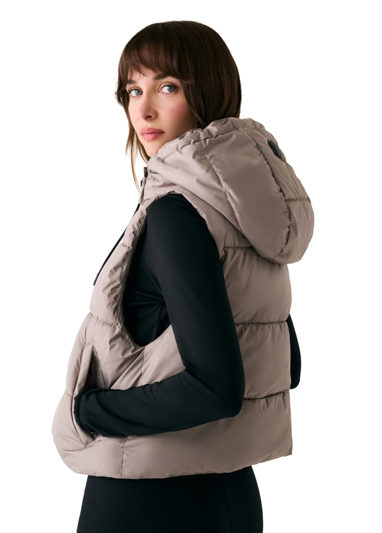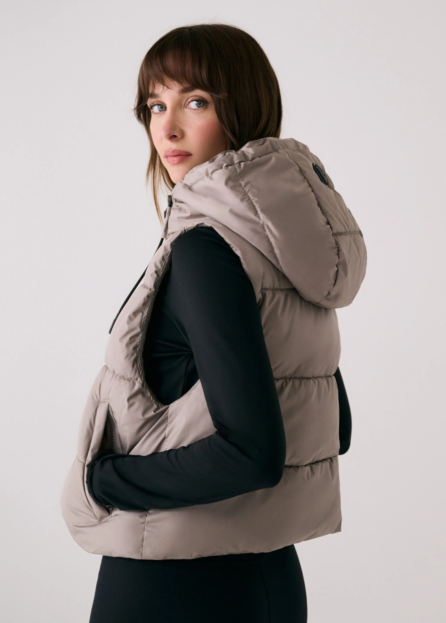 The London Cropped Vest delivers weightless warmth with a sleek, relaxed fit and a slightly cropped length. Designed with recycled insulation and water-repellent fabric, it keeps your core cozy without adding bulk. Wear it over a hoodie or under a coat. The fixed hood, adjustable back, and zippered pockets, it’s the perfect transitional piece.