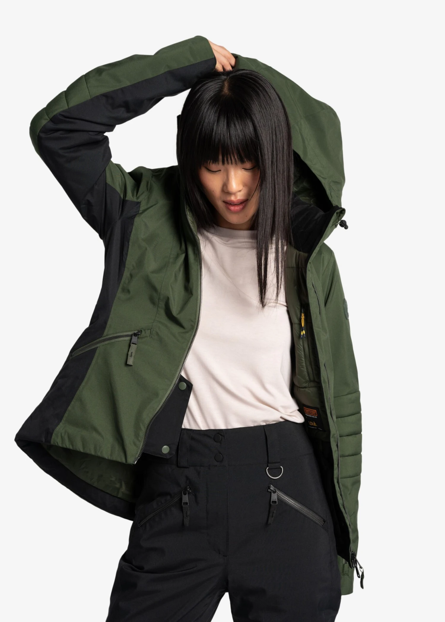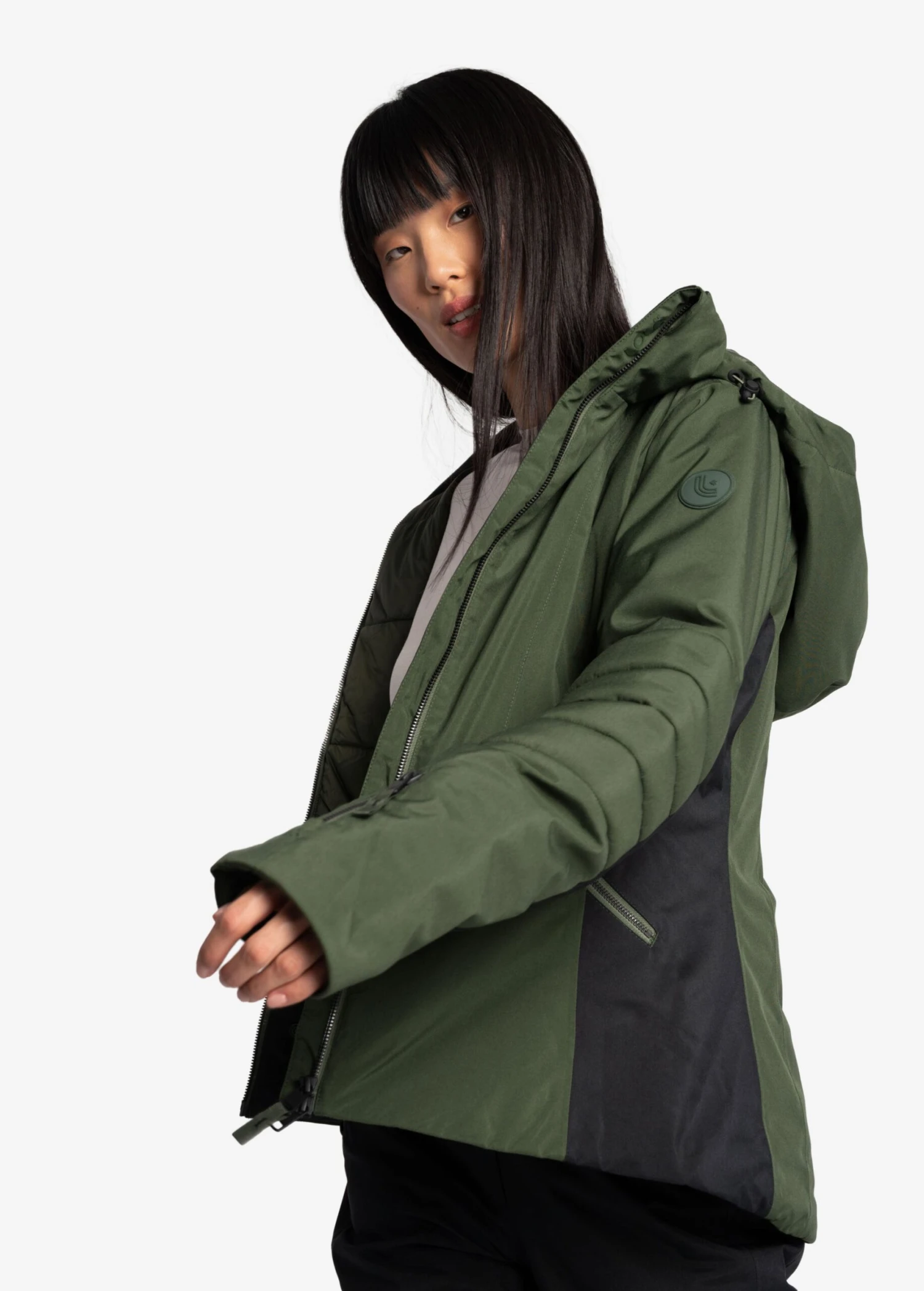 Breathable 10K FabricDurable water repellent coating applied to fabricFixed hoodHeat level: -10 to -20 °CFabrics sustainably sourced without harmful chemicalsStrategically seam sealedEcodown vegan insulation by Thermore® – made with recycled fibersWaterproof 10K Fabric