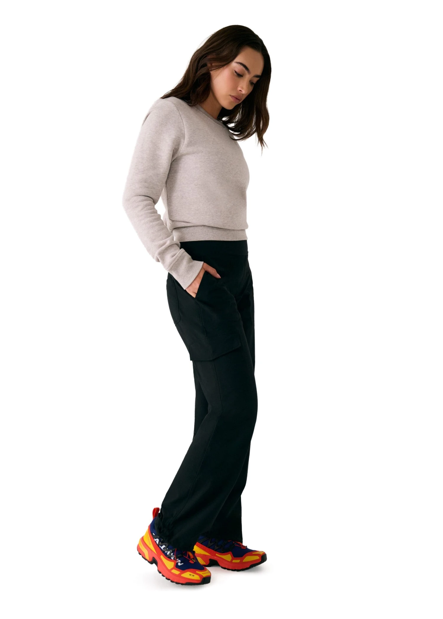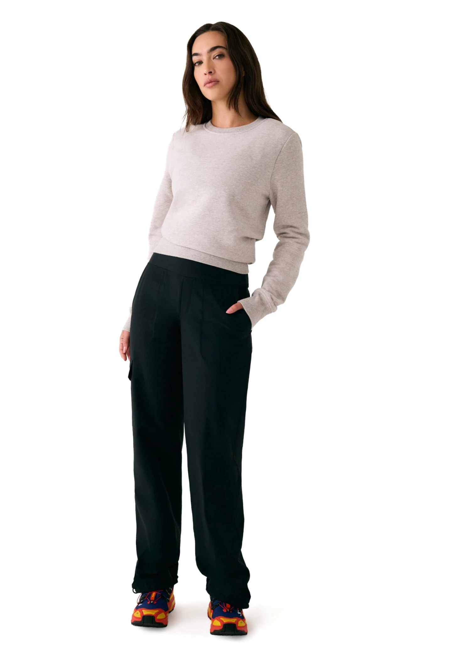 The Olivie Tech Trousers are made for movement, with a relaxed fit, mid-rise waist, and wide legs you can adjust at the hem. The pull-on style adds comfort, while the water-repellent finish helps you stay dry through light rain, splashes, or whatever the commute throws your way. Add a discreet cargo pocket and UPF 50+ protection, and you’ve got a pant that keeps up with real life and looks good doing it.